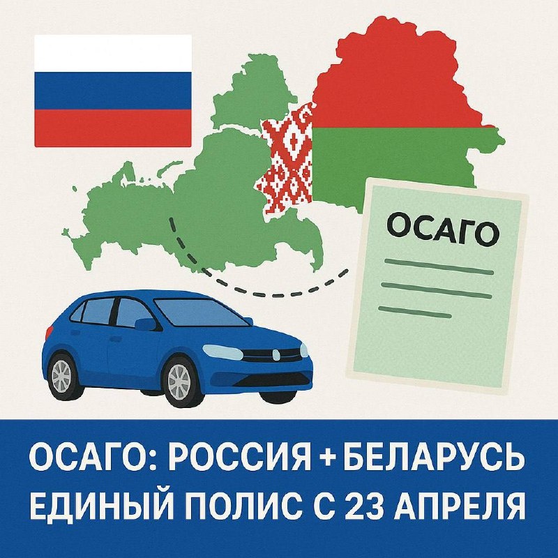 Единый полис ОСАГО для России и Белоруссии – с 23 апреля!🛡️ Теперь поездки в Белоруссию станут проще: с 23 апреля 2025 года начнёт действовать единый полис ОСАГО. Никаких дополнительных страховок на границе — всё уже включено! 💰Сколько это стоит? ✔️Легковые авто: от 3 400 до 3 590 руб. ✔️Грузовики: от 7 560 до 7 980 руб. 📌Что важно знать? 🔹 Страховщики сами определяют тариф в этих пределах. 🔹 Полис особенно полезен для жителей приграничных регионов и перевозчиков. 🔹 Закон о расширении ОСАГО на Белоруссию действует с 1 января, а сама система стартует в апреле. #GT_АвтоНовости