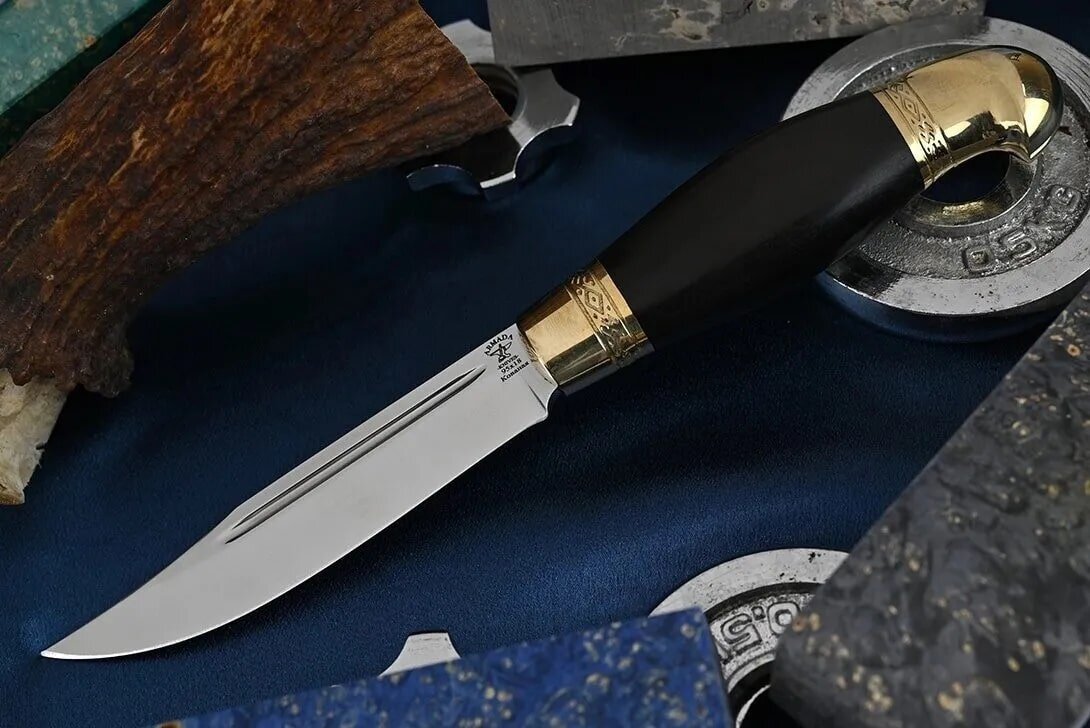 Финка. Ручная работа. Общая длина 260 мм. Клинок кованная сталь 95Х18. 140х25х3,5 мм. Ножны натуральная кожа. Сертификат/ паспорт.