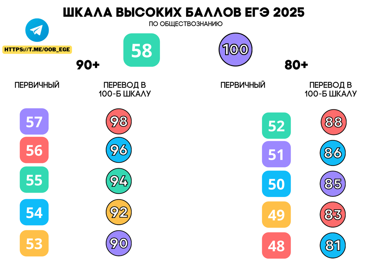 Вот так выглядит шкала перевода баллов выше 80 на ЕГЭ в этом году.