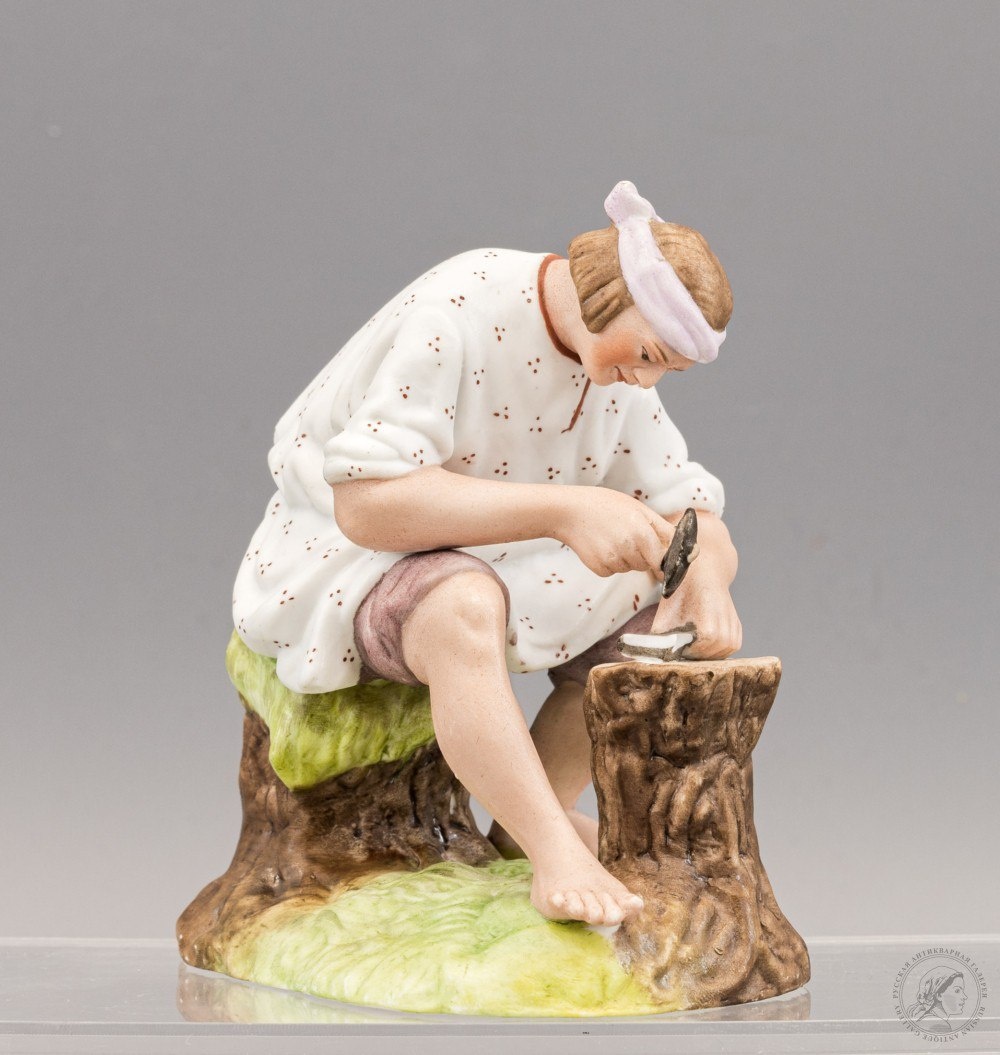 Русская антикварная галерея Сайт: rus-gal.ru #Скульптура «Крестьянин, отбивающий косу» Россия, #фарфоровый_завод_Гарднера Россия, кон. XIX - нач. XX в. #Бисквит, полихромная роспись. 11Х9,7Х10 см #Реализм, #Жанровые_картины, #фарфоровые_фигурки Подробнее: https://rus-gal.ru/works/skulptura-krestyanin-otbivayushhij-kosu/