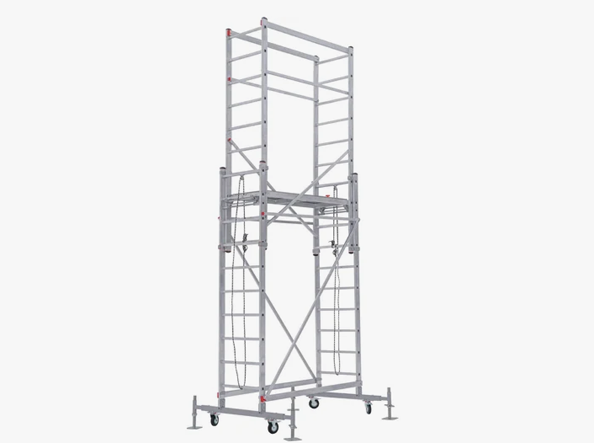 Плюсы: Минусы: Для чего: Внутренняя отделка, ремонт складов, монтаж потолков. 3. Сборно-разборные вышки: конструктор для профи Как выглядят: Набор рам, диагоналей и настилов, которые собираются как Lego.