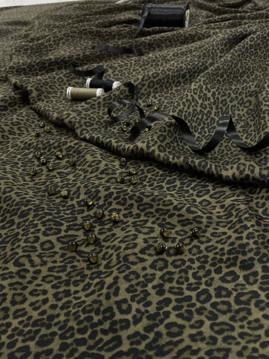 Роскошная леопардовая вискоза в темно-оливковом цвете.