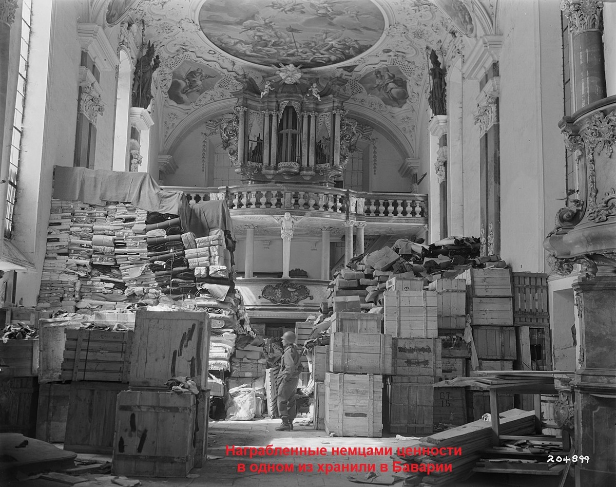Еще в 1925 году, задолго до прихода к власти, Гитлер задумал построить в Берлине «Немецкую национальную галерею» имени самого себя. По его замыслу, это должна был быть непревзойденная художественная галерея, «поистине величайший музей в мире», в котором были бы представлены лучшие образцы европейского искусства. Именно любовь фюрера к искусству во многом предопределила одно из главных преступлений Третьего Рейха, вошедшего в историю, как «нацистский грабеж» (Nazi plunder). В 1940 году были сформированы Оперативная группа рейхсляйтера Розенберга, или ERR, а также Sonderkommando Kuensberg, связанная с министром иностранных дел фон Риббентропом, «Фюрер-музей» во главе с Хансом Поссе и другие организации, которые стали заниматься целенаправленным грабежом культурных ценностей на оккупированных территориях. В первую очередь разграблялись коллекции и ценности, каким-либо образом связанные с евреями, но не гнушались «любители культуры» и произведений искусства, созданных более «полноценными» народами. Но если в Западной Европе (Франции, Бельгии, Голландии и др.) немцы все-таки придерживались каких-то рамок и правил (к примеру, знаменитый Версаль в Париже разграблен не был), то на Востоке присваивали и тащили всё, что душе угодно. Причем наиболее ценные вещи хватали перечисленные выше организации, те, что попроще и подешевле доставались менее статусным и специализированным конторам, а также высшим офицерам Вермахта, а всё остальное просто растаскивали «на сувениры» обычные солдаты. Например, с территории Польши немцы украли в общей сложности полмиллиона произведений искусства, в том числе 2800 картин европейских художников; 11 000 картин польских живописцев; 1400 скульптур; 75 000 рукописей; 25 000 карт; 90 000 книг, в том числе более 20 000 раритетных, напечатанных до 1800 года и т.д.