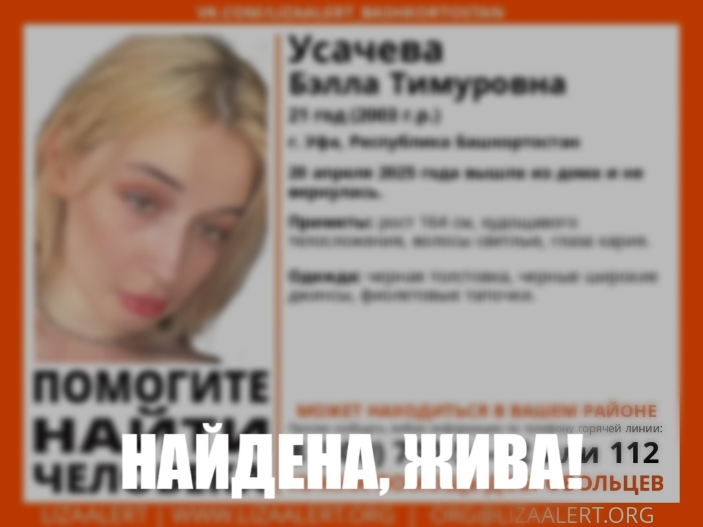 В Башкирии свернули поиски 21-летней Бэллы Усачевой, местонахождение которой не было известно с 20 апреля.