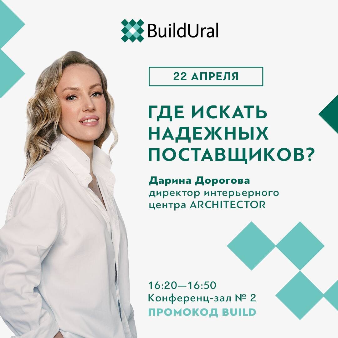 С 22 по 24 апреля в Екатеринбурге в рамках выставки Build Ural состоится форум дизайнеров и архитекторов DESIGN SPACE. Это мероприятие для профессионалов индустрии, посвященное последним достижениям и трендам в дизайне и архитектуре. Участники смогут ознакомиться с новинками отрасли, посетить выступления ведущих специалистов и поучаствовать в обсуждении актуальных вопросов. В числе топ-спикеров Дарина Дорогова, директор ИЦ ARCHITECTOR. Она раскроет одну из наболевших тем «Как и где найти надежных поставщиков?», поделится своими лайфхаками и опытом. Не упустите шанс стать частью главного архитектурного события весны! Встретимся уже завтра, чтобы перенять опыт экспертов, вдохновиться инновациями и лично познакомиться с профессионалами своего дела. Регистрация на форум без оплаты при использовании промокода BUILD. Регистрация 🔗