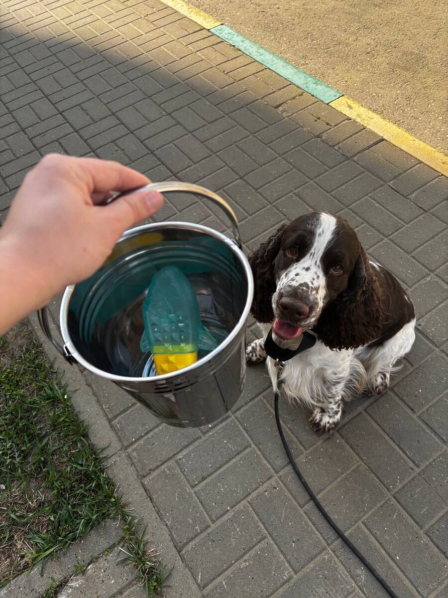 А еще подготовились к лету, купили охлаждающие игрушки и ветро для воды