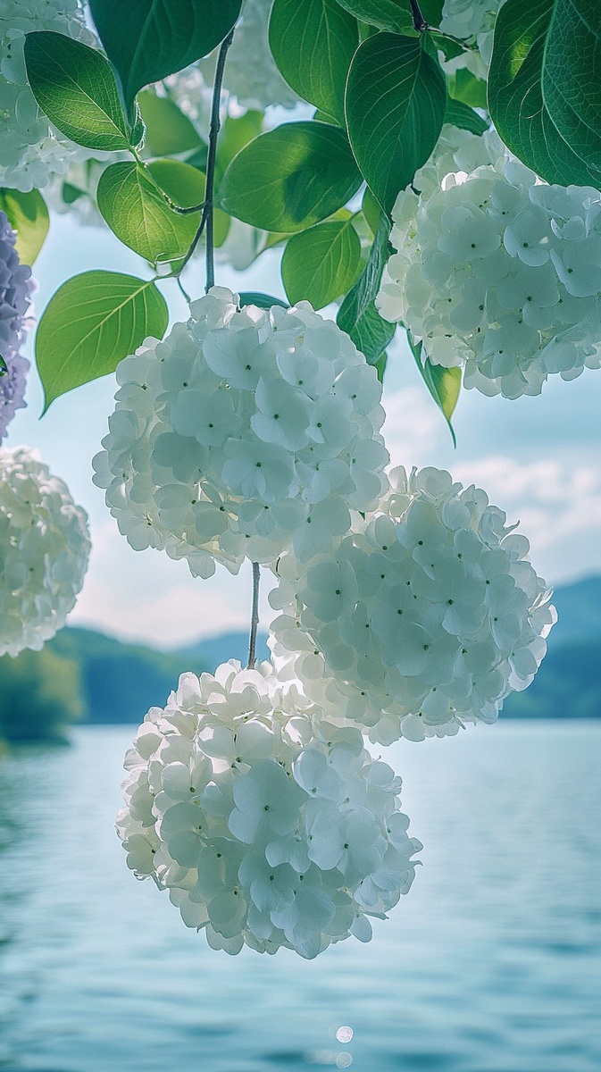 Создано на основе запроса: In the summer, by West Lake in Hangzhou, white hydrangea flowers bloom on green branches, and purple lace petals with many large round flower heads hang from them. The background is a blue sky and lake water. Real photography style, natural light. High-definition photography images, super details, depth of field, and a telephoto lens. --- Автоперевод: Летом, на Западном озере в Ханчжоу, белые цветы гортензии цветут на зеленых ветвях и пурпурные кружевные лепестки со многими большими круглыми цветочными головками свисают с них. Как тебе такая картинка? 🤔 https://dzen.ru/id/65c0c65c86e4f837c27b24d7 #ИИ #AI #нейросеть #midjourney #art