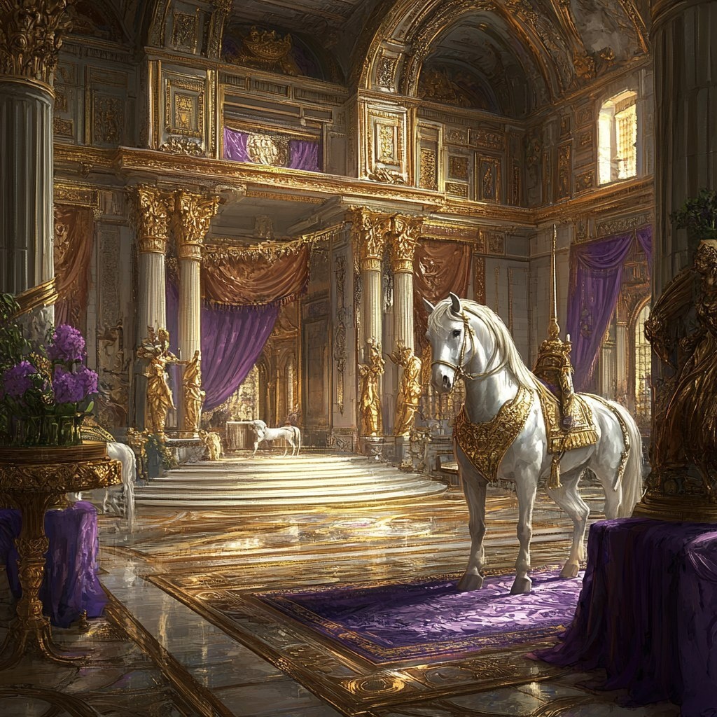 Создано на основе запроса: Roman temples, gilded floors, jewel soup, and... ivory stables and purple blankets for the horses.
