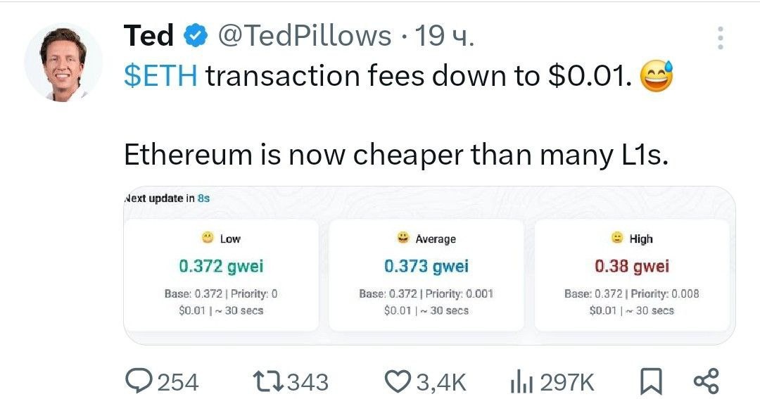 🔠🔠🔠🔠 А теперь про ETH.. 🗣Виталик Бутерин предлагает заменить виртуальную машину Ethereum. Такая замена может упростить выполнение смарт-контрактов и увеличить скорость сети в 100 раз. 👀 Комиссии в сети Ethereum ($0,01) сегодня стали дешевле, чем в некоторых L2-сетях. Если обновление реализуют успешно, Ethereum сможет вернуть себе лидерство в блокчейн-индустрии. Или нет...? Как думаете?