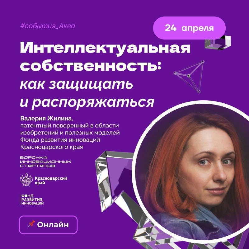 😑 Интеллектуальная собственность: как защищать и распоряжаться Если у вас есть идеи, продукты, ноу-хау, бренд — всё это интеллектуальная собственность. На онлайн-семинаре «Воронки» Валерия Жилина расскажет, как ее защитить и монетизировать. Что в программе: 🌟Как выбрать патентную стратегию и не влететь на 💸 🌟Как юридически защитить свои разработки 🌟Как продавать, лицензировать и зарабатывать на своих правах 🌟Как не отдать секреты производства в одни руки 🌟Какие договоры заключать и как не попасть в ловушку Спикер: Валерия Жилина, патентный поверенный с 10+ годами опыта, эксперт Фонда развития инноваций Краснодарского края. 📥24 апреля, четверг, 19:00–20:40 📌Онлайн в группе «Семинары Воронка» ✔️ Участие — бесплатно, но места ограничены. Регистрация по ссылке До встречи 24 апреля 🙃