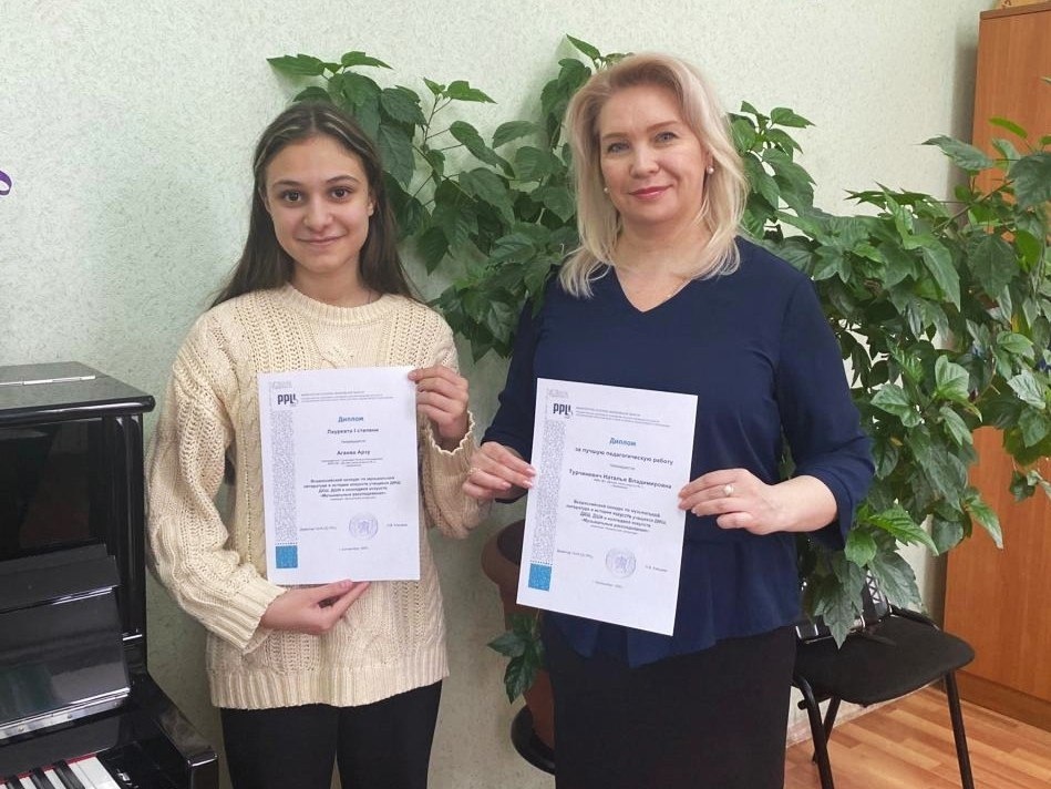 Поздравляем ученицу 5 класса ДШИ №2 Арзу Агаеву и преподавателя Наталью Владимировну Турчиневич с победой на Всероссийском конкурсе по