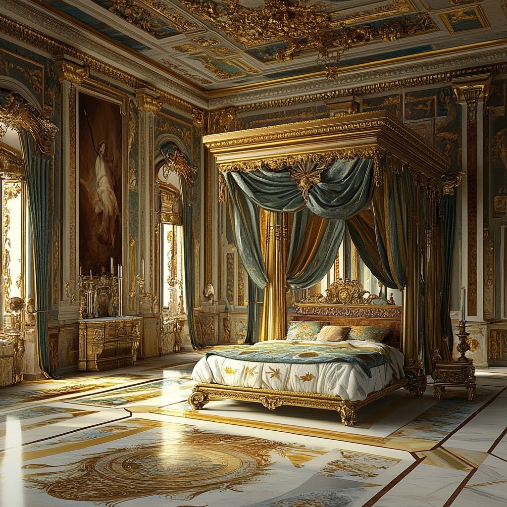 Создано на основе запроса: Roman temples, gilded floors, bigbed and