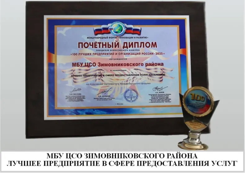 ЦСО Зимовниковского района вошёл в топ-100 лучших предприятий и организаций России