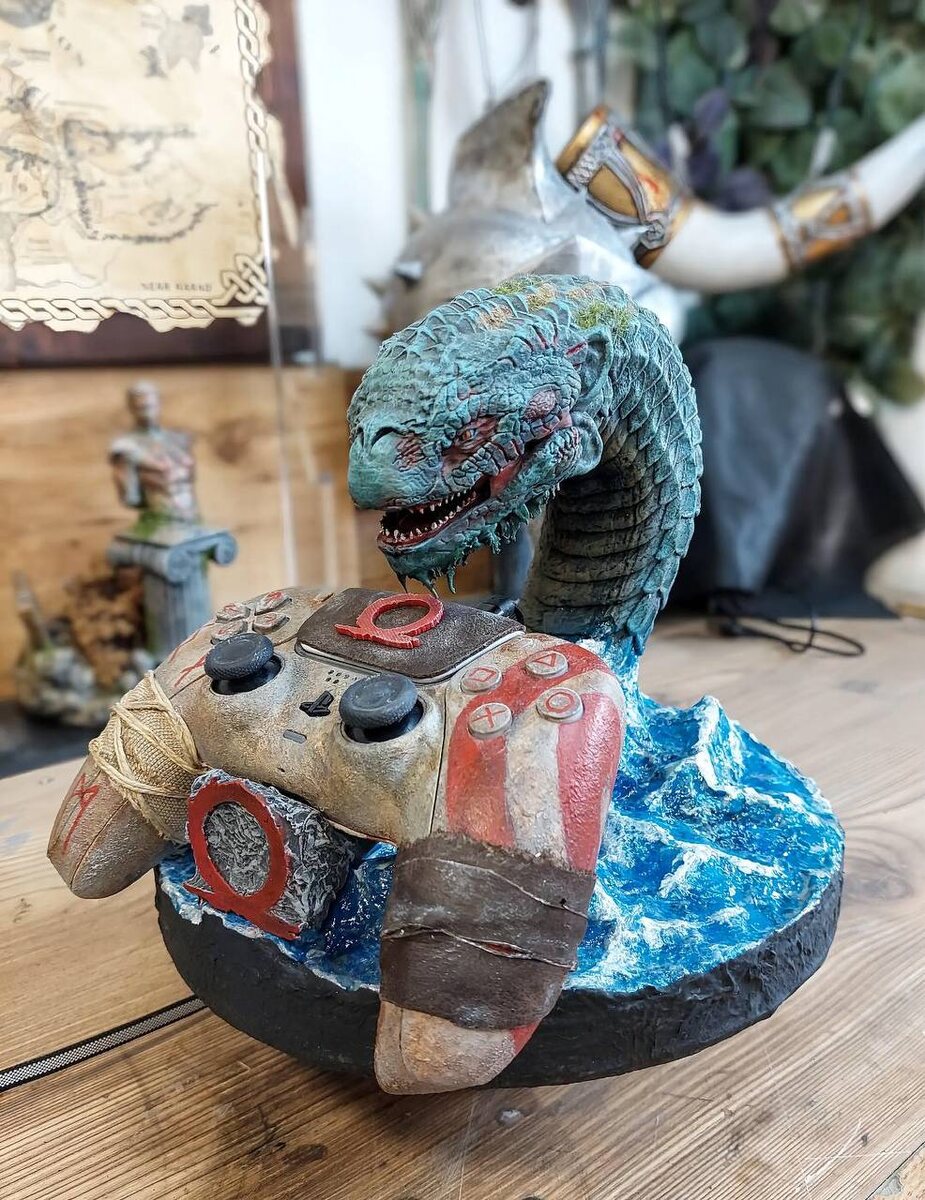 Кастомный геймпад и подставка в стиле скандинавской саги God of War.