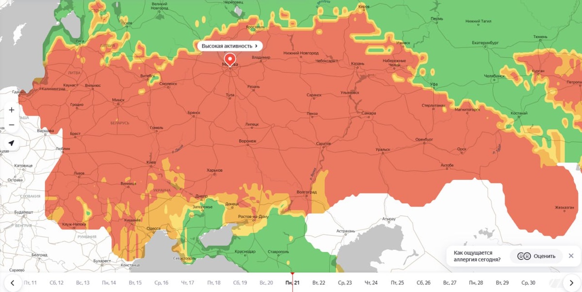 Аллергикам приготовиться: огромное облако пыльцы накрыло европейскую часть России