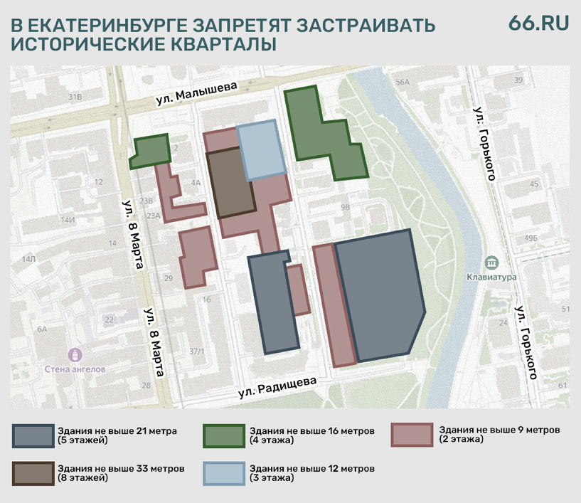 Специалисты разработали проект объединенной зоны охраны объектов культурного наследия (ОКН) в границах улиц Радищева, 8 Марта и Малышева. Там сохранились десятки усадеб конца XIX — начала XX века. Документ должен ограничить застройку в тех кварталах. Проект охранной зоны разработало бюджетное учреждение «Научно-производственный центр по охране и использованию памятников истории и культуры». Заказчик — тоже государственная структура — региональное Управление госохраны ОКН. Историки подчеркивают, что облик кварталов в центре города был испорчен новой застройкой. В двухтысячные годы на месте исторических особняков начали появляться офисные центры и многоуровневые парковки. Последний пример — попытка сноса дома Топоркова — произошел в январе 2024 года. Эта история спровоцировала в городе скандал, в который пришлось вмешаться мэру и губернатору. «Рассматриваемый проект объединенной зоны охраны объектов культурного наследия явно направлен на сохранение сложившейся застройки и сохранение исто