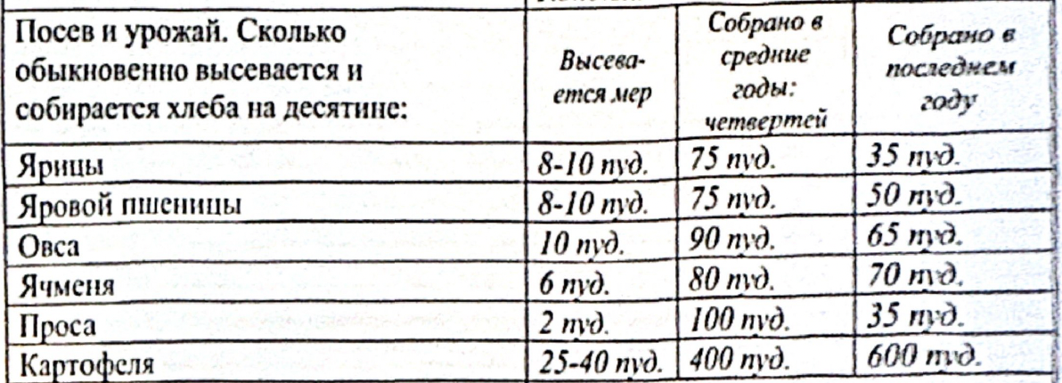 15. Сколько десятин было засеяно в последнем (таком-то) году каким хлебом