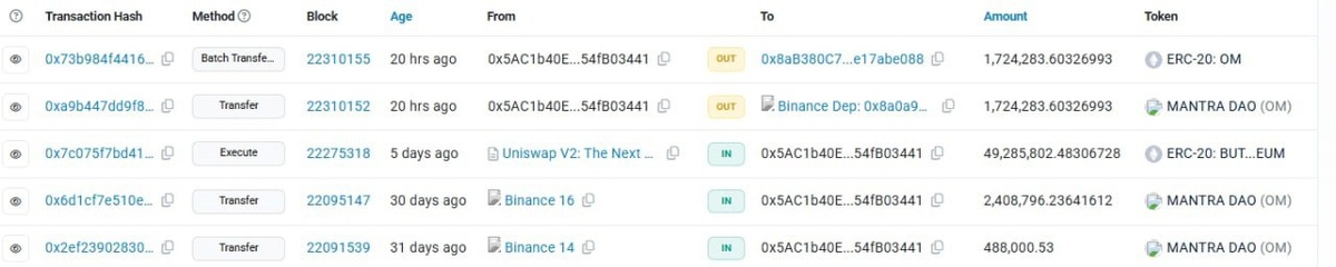 🤔 Как дела у Mantra после краха Токен все так же катается по полу, несмотря на то, что команда запустит программу по выкупу и сжиганию токенов. 🔽 Убытки инвесторов — огромные. Недавно адрес, который покупал токен OM по цене $6,46 на сумму ~ $18,7 млн, завел свои токены на Binance для продажи с убытком ~ $17 млн. Вера в восстановление прежней цены токена OM падает с каждым днем 😔