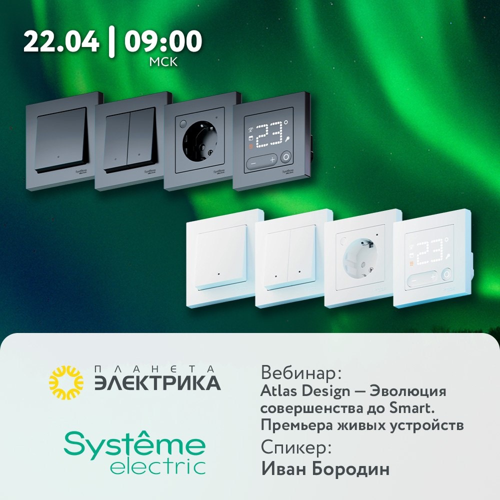 ▶️ Atlas Design - эволюция совершенства до Smart. Премьера живых устройств. Присоединяйтесь к нашему прямому эфиру, где мы раскроем историю совершенства - от первых розеток Atlas Design Classic до инновационных устройств AtlasDesign Smart! Мы расскажем, как серия развивалась, сохраняя элегантность и внедряя передовые технологии ✨ Вы узнаете: ☑️ как менялся дизайн от минимализма Classic до изысканных линий Nature, Art, Antique, Aqua и Air. ☑️ что изменилось в механизмах розеток с появлением быстрозажимных клемм. ☑️ почему AtlasDesign Smart — это новый этап эволюции, сочетающий традиции и умные функции. ☑️ технологии будущего: Zigbee 3.0, интеграция в умный дом и совместимость с классическими сериями (Classic, Nature, Art, Antique). Главные фишки AtlasDesign Smart ➡️ сценарии освещения — создайте уютное кино или энергичное утро одним касанием. ➡️ таймеры и расписания — при необходимости свет будет включаться даже в ваше отсутствие ➡️ Zigbee-ретранслятор — усиливайте сигнал по в