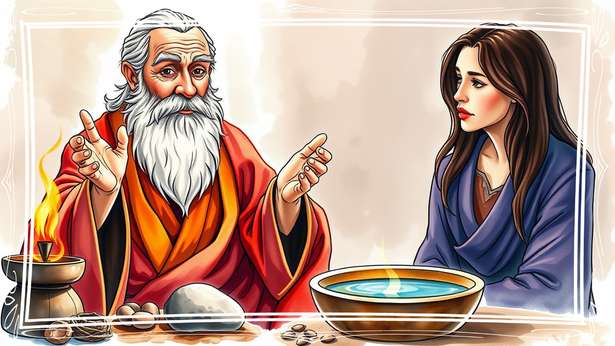 Мудрец выслушал ее молча, с глубоким сочувствием во взгляде. Затем он взял пять предметов: кусок воска, комок сырой глины, тонкую палочку благовоний, небольшой гладкий камень и несколько семян диковинного цветка. Он развел огонь, рядом поставил чашу с водой и приготовил клочок рыхлой земли.
