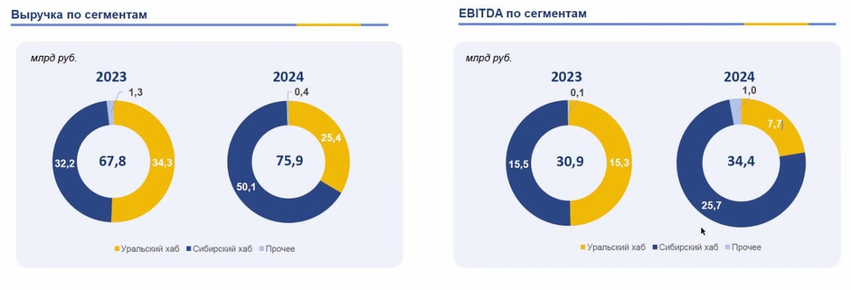 Показатель EBITDA прибавил 11% и достиг 34,4 млрд руб. Рентабельность практически не изменилась: 45,3% в 2024 году против 45,6% годом ранее. Для сравнения, у Полюса этот показатель составил почти 80%.
