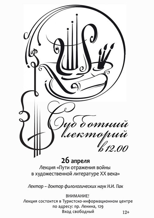 🗣26 апреля в 12:00 в туристско-информационном центре «Калужский край. Обнинск» состоится лекция «Пути отражения войны в художественной литературе xx века». Лектор – доктор филологических наук, Пак Н.И. Вход свободный. Обнинск, пр-т Ленина, 129 (вход со стороны проспекта). 👍 Подписаться | Прислать мероприятие