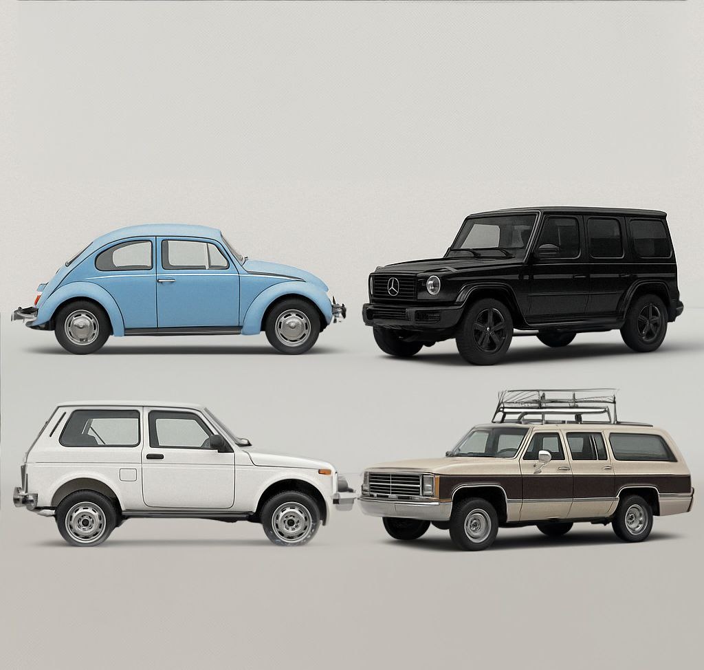 2️⃣ Ностальгия: Beetle и G-Class стали символами свободы и роскоши.