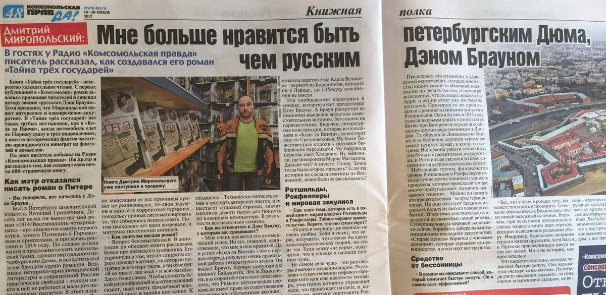 «Мне больше нравится быть петербургским Дюма, чем русским Дэном Брауном»