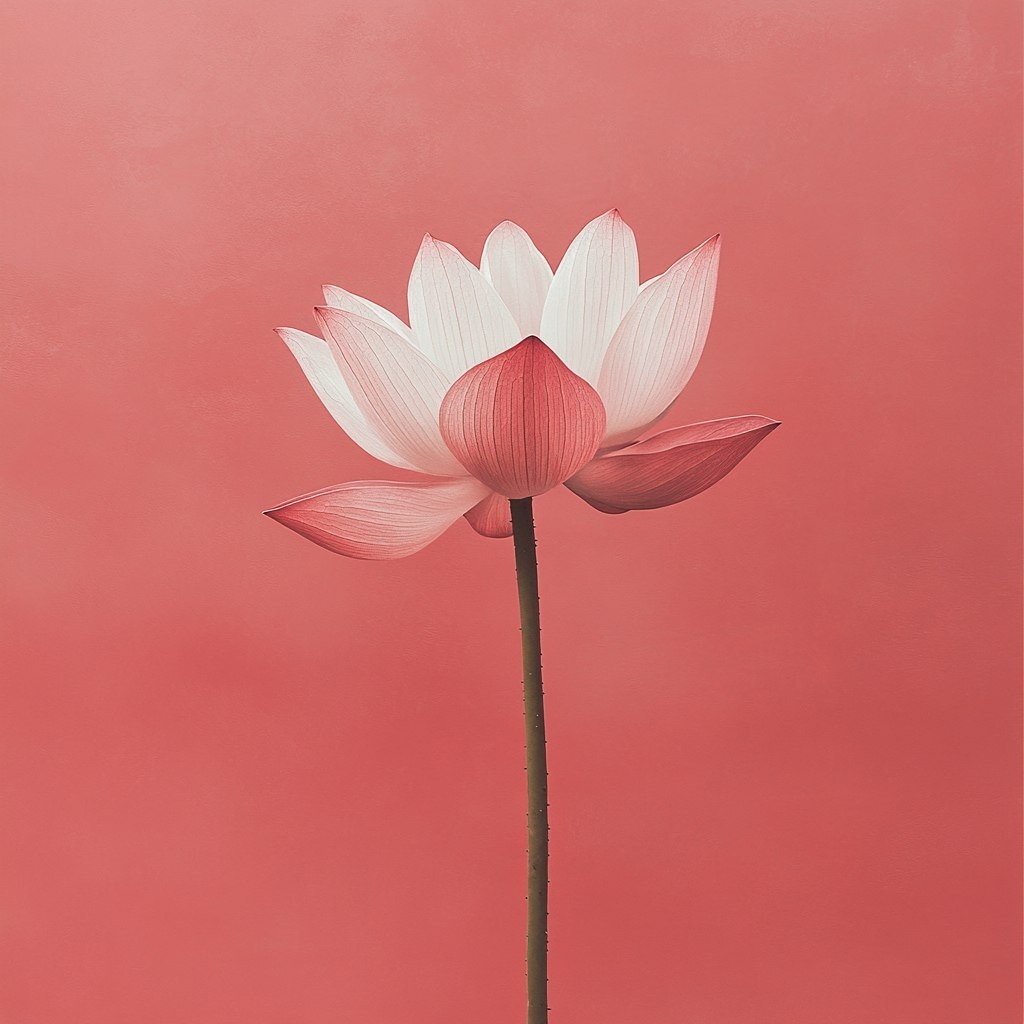 Создано на основе запроса: minimalistic japanese pink lotus art, behind a rose clay red pink background