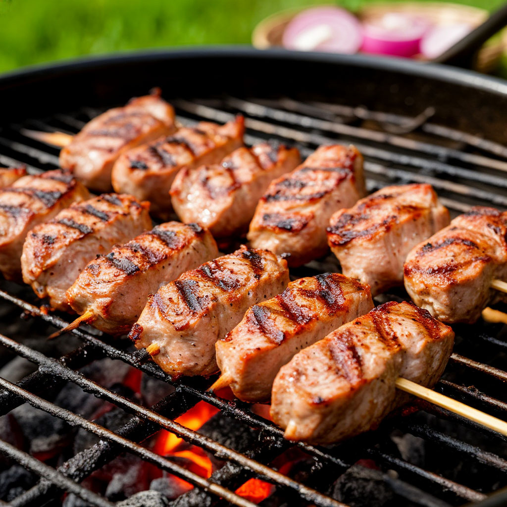 Близится сезон шашлыков. Многие стараются выбраться на природу приготовить вкусный шашлык и приятно провести время. Однако, стоить помнить, что вместе с сезоном шашлыков приходит пожароопасный сезон. Каждый должен помнить противопожарные меры, что бы не случилось пожара. Это тот рецепт который нравится мне и моей семье. Для приготовления маринованного шашлыка из индейки нам понадобятся следующие ингредиенты (из расчета на 1 кг мяса): 1. Филе бедра индейки (охлажденное мясо) - 1 кг. 2. Помидоры - 2-3 шт. 3. Специи для шашлыка. (я покупаю на рынке, где при тебе смешивают разные специи) - 2 ст. ложки. 4. Соль - 2 ст. ложки. 5. Лук - 2 луковицы. 6. Майонез - 300 гр. Приготовление: Нарезать куски филе на куски размером 3 на 3 см. Нарезать лук кольцами. Помидоры нарезать кругами. Уложить мясо на дно кастрюли слоем толщиной в один нарезанный кусок. Посолить и посыпать специями. Поверх мяса уложить слой лука и слой помидоров, и полить слой майонеза. И повторить слои повторно, пока все ингреди