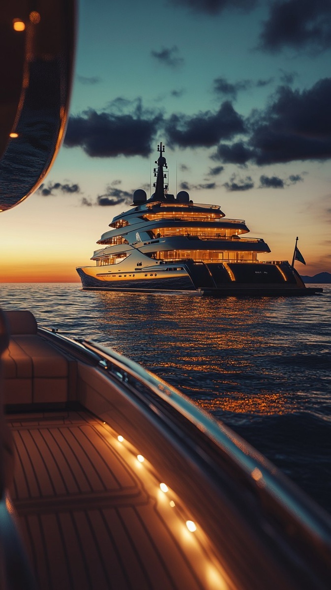 Создано на основе запроса: a cinematic view from a small speedboat approaching a glowing luxury super yacht at night, super yacht very close, illuminated deck lights, dramatic ocean reflections, sunset beautiful sky without clouds, moody lighting, sense of arrival, ultra-realistic photography style, 8k, shot from behind the classy boat captain with white shirt, --- Автоперевод: Кинематографический вид с маленькой скоростной лодки, приближающейся к светящейся роскошной супер яхте ночью, очень близкой яхты, освещенных светильников колоды, драматических океанских отражений, прекрасного неба, красивого неба без облаков, капризное освещение, чувство прибытия, ультрареалистичный стиль фотографии, 8 тыс. Как тебе такая картинка? 🤔 https://dzen.ru/id/65c0c65c86e4f837c27b24d7 #ИИ #AI #нейросеть #midjourney #art