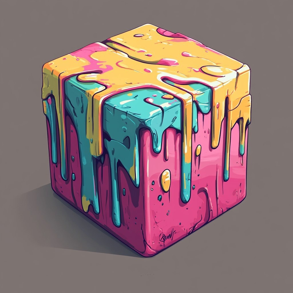 Создано на основе запроса: Top view of an isometric cube, with rounded corners on all sides. The edges should be straight lines without any shading or gradients; instead there are four short legs at each corner that go up into one horizontal edge, giving its appearance as if you were looking down onto them from above, in the graffiti style using high glossy drippy paints --- Автоперевод: Вверху видом на изометрический куб, с округлыми углами со всех сторон. Необычно получилось? 🤔 https://dzen.ru/id/65c0c65c86e4f837c27b24d7 #ИИ #AI #нейросеть #midjourney #art