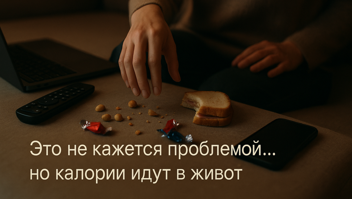 У большинства людей питание вроде не совсем вредное да и в спортзал ходить не забывают, а живот все равно как-то выделяется. И проблема чаще всего не в лени или переедании, а в простых повседневных привычках, о которых мы даже не задумываемся. Вот 7 таких «мелочей», которые мешают убрать живот. Стоит откорректировать хотя бы одну из них и уже можно заметить, как одежда начинает сидеть свободнее, а настроение становится лучше. Когда утром некогда или просто не хочется есть, многие ограничиваются чашкой кофе. И все бы ничего, но потом днем и особенно вечером хочется съесть все, что попадется под руку. А организм к тому моменту уже замедлил обмен веществ и решил отложить «на черный день» - именно в область живота. Никто не говорит, что надо есть с утра котлеты. Достаточно овсянки, йогурта с фруктами или пары яиц. Главное - дать телу понять, что еда есть, и можно спокойно расходовать энергию. То орешки, то печенька, то бутерброд «на скорую руку». Вроде бы мелочь, но в итоге калорий нак