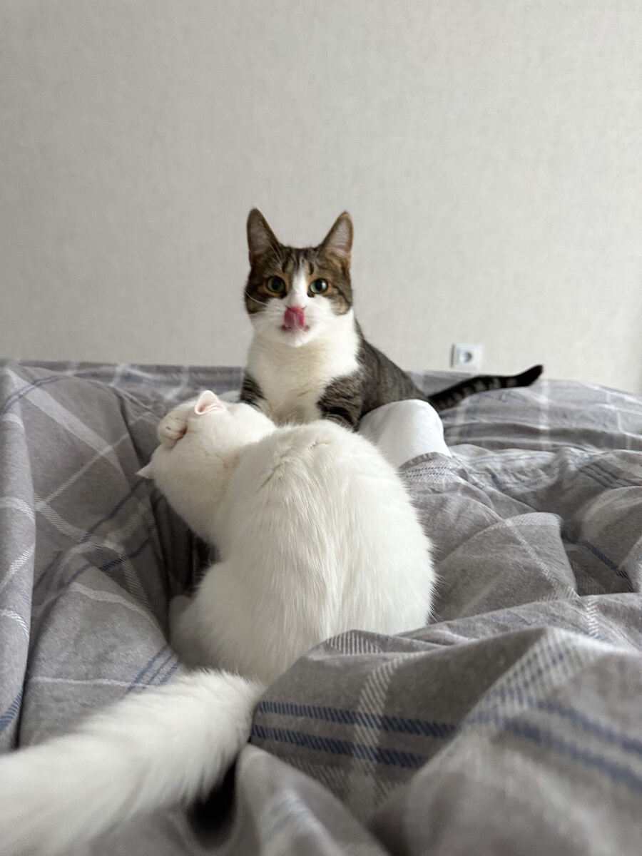 Две кошки в доме - это неизбежно конфликты, по крайней мере в первое время. Мята с Аляской далеко не сразу нашли общий язык и их знакомство началось с шипения. Но спустя время драки перешли в игровые и теперь они весело задирают друг друга. Главный признак, что драка не является игрой - это фыркание, шипение, рычание. Во время драки питомцы могут использовать когти, нанося травмы друг другу. Прежде всего конфликты могут быть связаны с дележкой ресурсов, поэтому очень важно при появлении нового питомца обеспечить его индивидуальным набором: миска, лоток, когтеточка, игрушки. Спустя время питомцы привыкнут друг к другу и конфликты сойдут на нет. Если вы не планируете заниматься разведением, то питомцев лучше стерилизовать, особенно если они одного пола. Не кастрированные животные могут агрессивно защищать свою территорию и потомство Сейчас можно найти неплохие средства с феромонами для кошек, которые помогают им быстрее найти общий язык Кошки от скуки могут начать преследовать друг друга