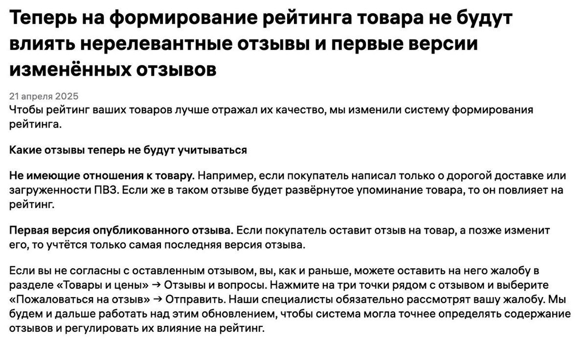 При формировании рейтинга нерелевантные отзывы не будут учитываться