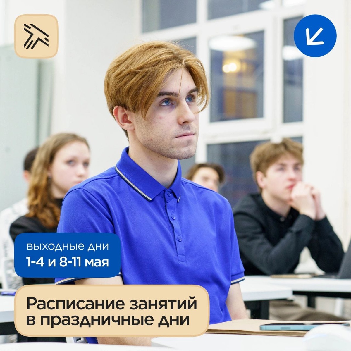 Объявлены даты выходных праздничных дней для студентов и сотрудников 💙 ⏰ В связи праздниками не будут проводиться занятия с 1 по 4 мая и с 8 по 11 мая. Желаем хорошо отдохнуть, а также вспомнить о делах, отложенных в долгий ящик ;) ____ Будь в курсе событий РУТ: @rut_live