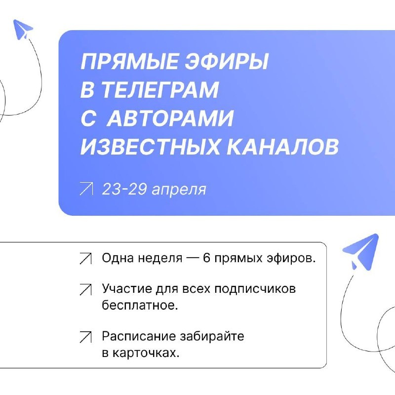 🔔 Прямые эфиры от экспертов в Телеграм. Мы с коллегами запускаем череду прямых эфиров: в течение недели каждый день на своих каналах мы будем рассказывать о фишках в HR, прогнозировать судьбу рекрутинга и давать карьерные советы. 🔥 Начинаем 23 апреля. Присоединиться к эфиру могут все и совершенно бесплатно. Наверно, все спикеры вам знакомы, так как они ведут известные телеграм-каналы для HR. Но проверьте подписку на канал, чтобы не пропустить прямой эфир по интересующей вас теме. Удобнее всего забрать одним кликом папку со всеми каналами спикеров ▶️ 📅 Расписание прямых эфиров (нажмите, чтобы развернуть полностью) 🕛 23 апреля в 15:00 по мск на канале @hr_with_ambitions 🔹 Данил Мяло, главный редактор журнала «Директор по персоналу» 💬 HR-контент. О чем и как рассказать соискателям, чтобы они вас полюбили 🕛 24 апреля 16:00 по мск на канале @itrecruiting 🔹 Светлана Петровичева, Head of Growth at GetIT.agency 💬 Промптами по боли: как разговаривать с ИИ, чтобы он стал лучшим