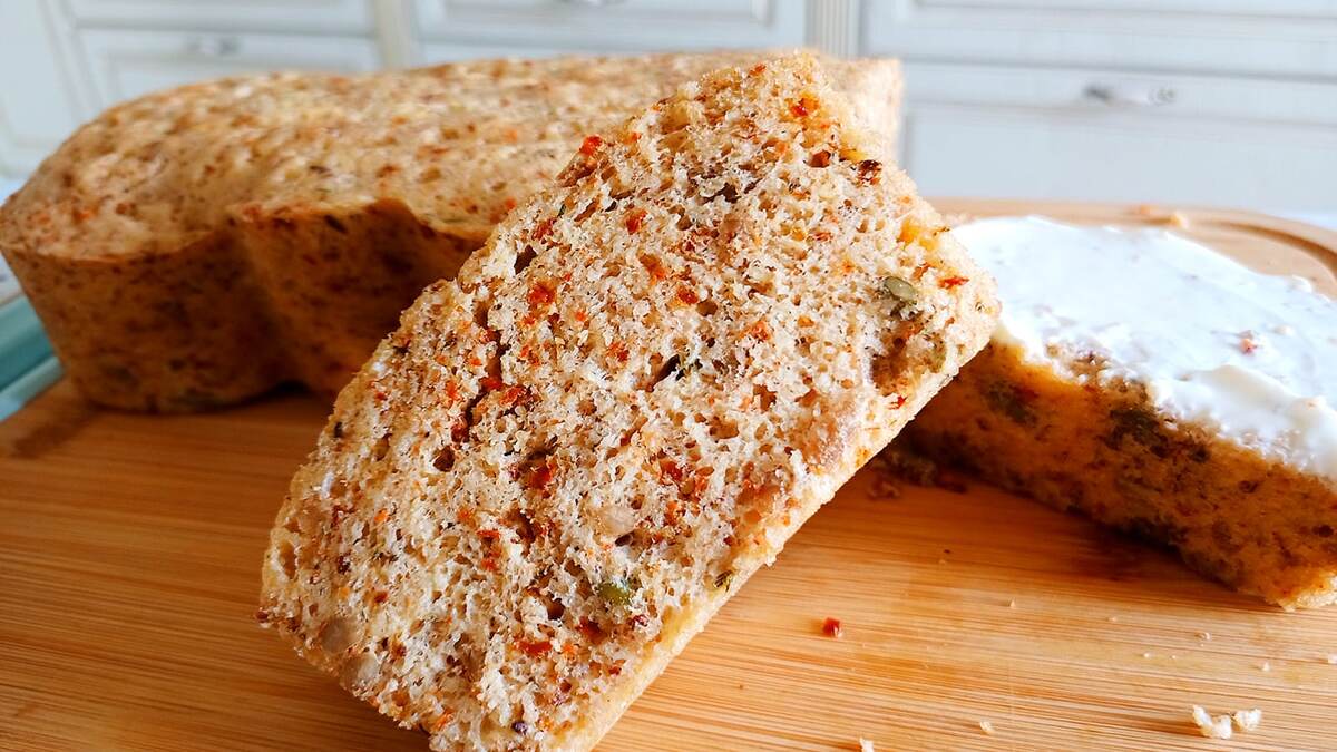 Кето хлеб на миндальной муке получается очень вкусный и пористый. Насыщенная и яркая текстура хлеба достигается благодаря присутствию в его составе семян и специй. Миндальный кето хлеб, это отличный выбор для всех у кого плохая толерантность к инсулину, либо кто соблюдает низкоуглеводное или кето питание. Это лучший вариант кето хлеба для здоровья. 1. Миндальная мука – 100 г.; 2. Сливочное масло – 70 г.; 3. Яйца – 4 шт.; 4. Разрыхлитель – 5 г.; 5. Псиллиум – 10 г.; 6. Соль – 1⁄4 чайной ложки; 7. Семена (тыквы и подсолнуха) – 40 г.; Способ приготовления: В яйца добавляю соль. Взбиваю на высоких оборотах миксера до получения пышной яичной смеси. Добавляю сливочное масло и псиллиум. Недолго перемешиваю миксером. Всыпаю всю миндальную муку, разрыхлитель, смесь семян тыквы и подсолнуха, а также специи по вкусу. В качестве специй я использовал паприку и восточные пряности. Недолго перемешиваю миксером. В удобную силиконовую форму с предварительно смазанными бортами сливочным маслом, выкладыв