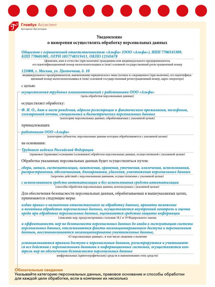 π€ΠΠ°ΠΊ ΠΊΠΎΠΌΠΏΠ°Π½ΠΈΡΠΌ ΠΏΠΎΠ΄Π³ΠΎΡΠΎΠ²ΠΈΡΡΡΡ, ΠΏΡΠ΅ΠΆΠ΄Π΅ ΡΠ΅ΠΌ Π ΠΎΡΠΊΠΎΠΌΠ½Π°Π΄Π·ΠΎΡ ΠΏΡΠΈΠ΄Π΅Ρ Ρ ΠΏΡΠΎΠ²Π΅ΡΠΊΠΎΠΉ ΠΠΎ ΠΊΠΎΠ½ΡΠ° ΠΌΠ°Ρ Ρ ΠΊΠΎΠΌΠΏΠ°Π½ΠΈΠΉ Π΅ΡΠ΅ Π΅ΡΡΡ Π²ΡΠ΅ΠΌΡ ΠΏΠ΅ΡΠ΅ΠΏΡΠΎΠ²Π΅ΡΠΈΡΡ ΡΠ°Π±ΠΎΡΡ Ρ ΠΏΠ΅ΡΡΠ΄Π°Π½Π½ΡΠΌΠΈ, ΡΡΠΎΠ±Ρ ΠΏΠΎΡΠΎΠΌ Π½Π΅ ΠΏΠ»Π°ΡΠΈΡΡ ΠΌΠΈΠ»Π»ΠΈΠΎΠ½Ρ. ΠΡΠ»ΠΈ Π²Ρ Π½ΠΈΠΊΠΎΠ³Π΄Π° Π½Π΅ ΠΎΡΠΏΡΠ°Π²Π»ΡΠ»ΠΈ ΡΠ²Π΅Π΄ΠΎΠΌΠ»Π΅Π½ΠΈΠ΅, ΡΠ΄Π΅Π»Π°ΠΉΡΠ΅ ΡΡΠΎ ΡΠ΅ΠΉΡΠ°Ρ, Π΄Π°ΠΆΠ΅ Π΅ΡΠ»ΠΈ ΠΎΠ±ΡΠ°Π±Π°ΡΡΠ²Π°Π΅ΡΠ΅ ΠΏΠ΅ΡΡΠ΄Π°Π½Π½ΡΠ΅ ΡΠΆΠ΅ ΠΎΡΠ΅Π½Ρ Π΄Π°Π²Π½ΠΎ. ΠΠΎΠΌΠΏΠ°Π½ΠΈΡ Π΄ΠΎΠ»ΠΆΠ½Π° ΡΠ²Π΅Π΄ΠΎΠΌΠΈΡΡ Π ΠΎΡΠΊΠΎΠΌΠ½Π°Π΄Π·ΠΎΡ, Π΄Π°ΠΆΠ΅ Π΅ΡΠ»ΠΈ ΡΠ°Π±ΠΎΡΠ°Π΅Ρ ΡΠΎΠ»ΡΠΊΠΎ Ρ Π΄Π°Π½Π½ΡΠΌΠΈ ΡΠΎΡΡΡΠ΄Π½ΠΈΠΊΠΎΠ². ΠΡΡΡ ΡΡΠΈ Π²ΠΈΠ΄Π° ΡΠ²Π΅Π΄ΠΎΠΌΠ»Π΅Π½ΠΈΠΉ: β ΠΎ Π½Π°ΠΌΠ΅ΡΠ΅Π½ΠΈΠΈ ΠΎΠ±ΡΠ°Π±Π°ΡΡΠ²Π°ΡΡ ΠΏΠ΅ΡΡΠΎΠ½Π°Π»ΡΠ½ΡΠ΅ Π΄Π°Π½Π½ΡΠ΅; β ΠΎ Π²Π½Π΅ΡΠ΅Π½ΠΈΠΈ ΠΈΠ·ΠΌΠ΅Π½Π΅Π½ΠΈΠΉ Π² ΡΠ°Π½Π΅Π΅ ΠΏΠΎΠ΄Π°Π½Π½ΠΎΠ΅ ΡΠ²Π΅Π΄ΠΎΠΌΠ»Π΅Π½ΠΈΠ΅; β ΠΎ ΠΏΡΠ΅ΠΊΡΠ°ΡΠ΅Π½ΠΈΠΈ ΠΎΠ±ΡΠ°Π±ΠΎΡΠΊΠΈ ΠΏΠ΅ΡΡΠΎΠ½Π°Π»ΡΠ½ΡΡ