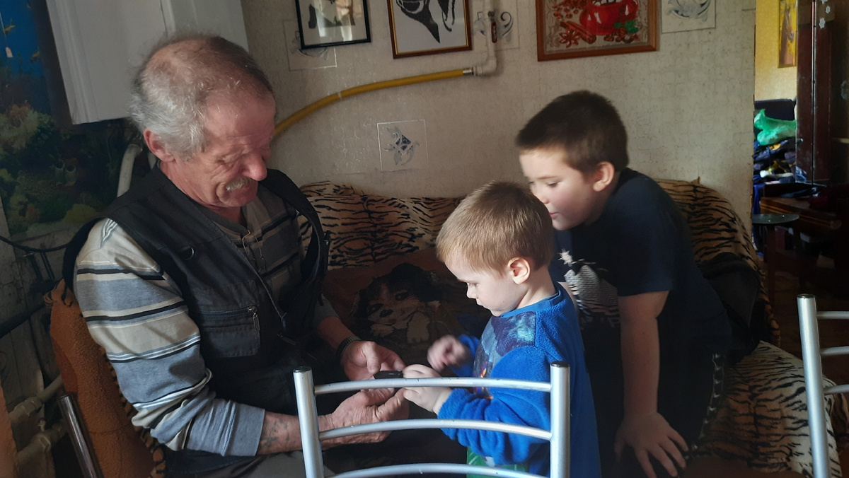 К нам приехал дедушка.