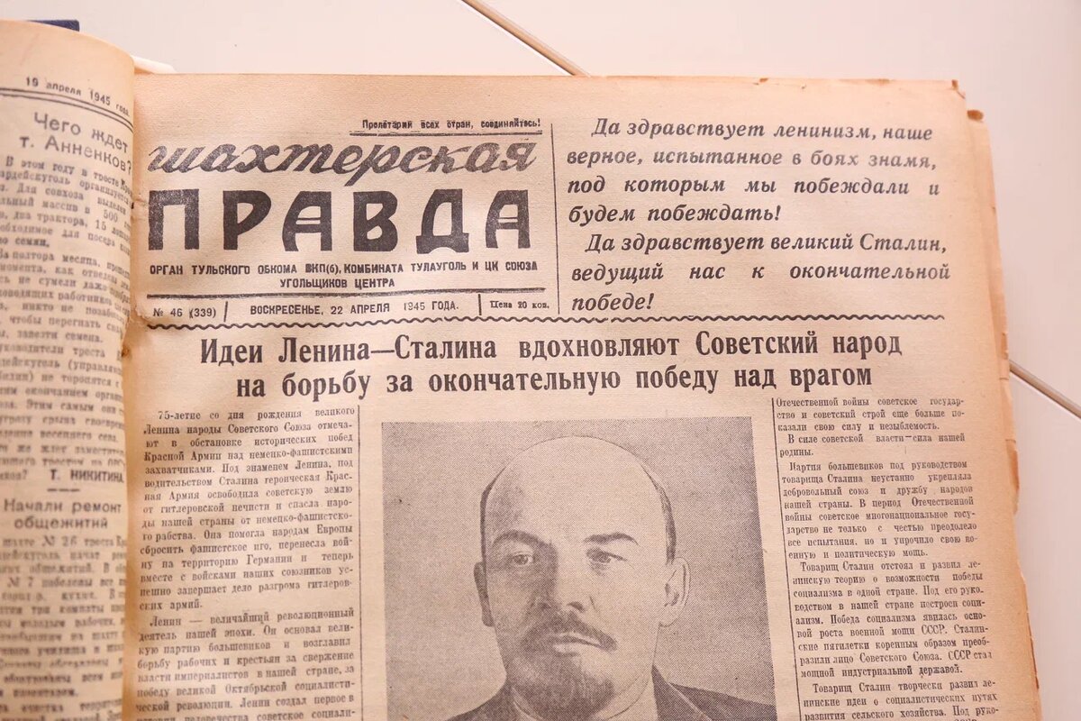 22 апреля 1945 года Владимиру Ильичу Ленину исполнилось бы 75 лет. А сегодня, 22 апреля 2025 года, исполняется 155 лет со дня его рождения. «Ленин – величайший революционный деятель нашей эпохи. Он основал великую партию большевиков и возглавил борьбу рабочих и крестьян за свержение власти империалистов в нашей стране, за победу великой Октябрьской социалистической революции.» Эта характеристика Вождя пролетариата напечатана в «Шахтерской правде» 22 апреля 1945 года. «Помните, любите, изучайте Ильича, нашего учителя, нашего вождя. (Сталин)» «Сталиногорская правда» пишет о Ленине: «Он гордился русским народом, который выдвинул замечательных мыслителей и революционеров, выдвинул самый передовой в мире революционный рабочий класс. В результате свержения господства помещиков и капиталистов широчайшие массы нашей страны создали свое отечество, отечество трудящихся. Отстаивая дело мира, Ленин все время предупреждал об опасности военного нападения. «ВСЕГДА ОСТАЕТСЯ ВОЗМОЖНОСТЬ, ЧТО СО ДНЯ НА
