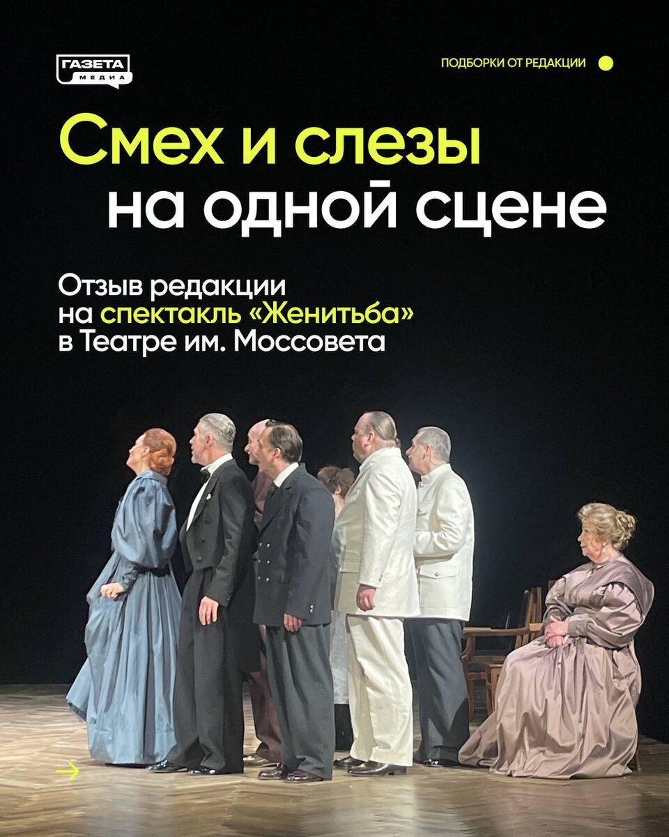«Настолько жизненно, что даже страшно смеяться, но все равно это делаешь!» Мы уже делились с вами нашим первым опытом в пресс-показах, а именно Ксюша и Катя из нашей редакции вместе с журналисткой Ирой, посетили спектакль «Женитьба» по пьесе Н. В. Гоголя в Театре им. Моссовета. Обещали рассказать вам о наших впечатлениях — держим слово! В моментах я то смеялась до слез, то про себя ругала отдельных героев. Настолько жизненно, что даже страшно смеяться, но все равно это делаешь! Советуем вам посетить этот спектакль на все 100%, чтобы прочувствовать все эмоции на себе. А кто уже видел — приглашаем обсудить впечатления под постом.