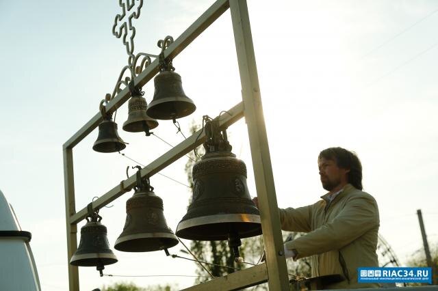 Переносную звонницу установили в Свято-Никольском кафедральном соборе города Камышина. Как сообщили РИАЦ в администрации Камышинского района, переносную звонницу, на которой играет Фёдор Кузнецов с народным ансамблем «Родные напевы» РДК, перенесли в собор, чтобы дети смогли ударить в колокола. По словам протодиакона о. Георгия Матвеева, взрослые в праздничные дни поднимаются наверх, чтобы прозвонить, а маленькие прихожане побаиваются – для них и организовали площадку во дворе храма и даже устраивают мастер-классы. Ранее звонницу, ныне востребованную по всему региону, народному ансамблю подарил меценат – фермер из села Лебяжьего Камышинского района Андрей Липпардт.