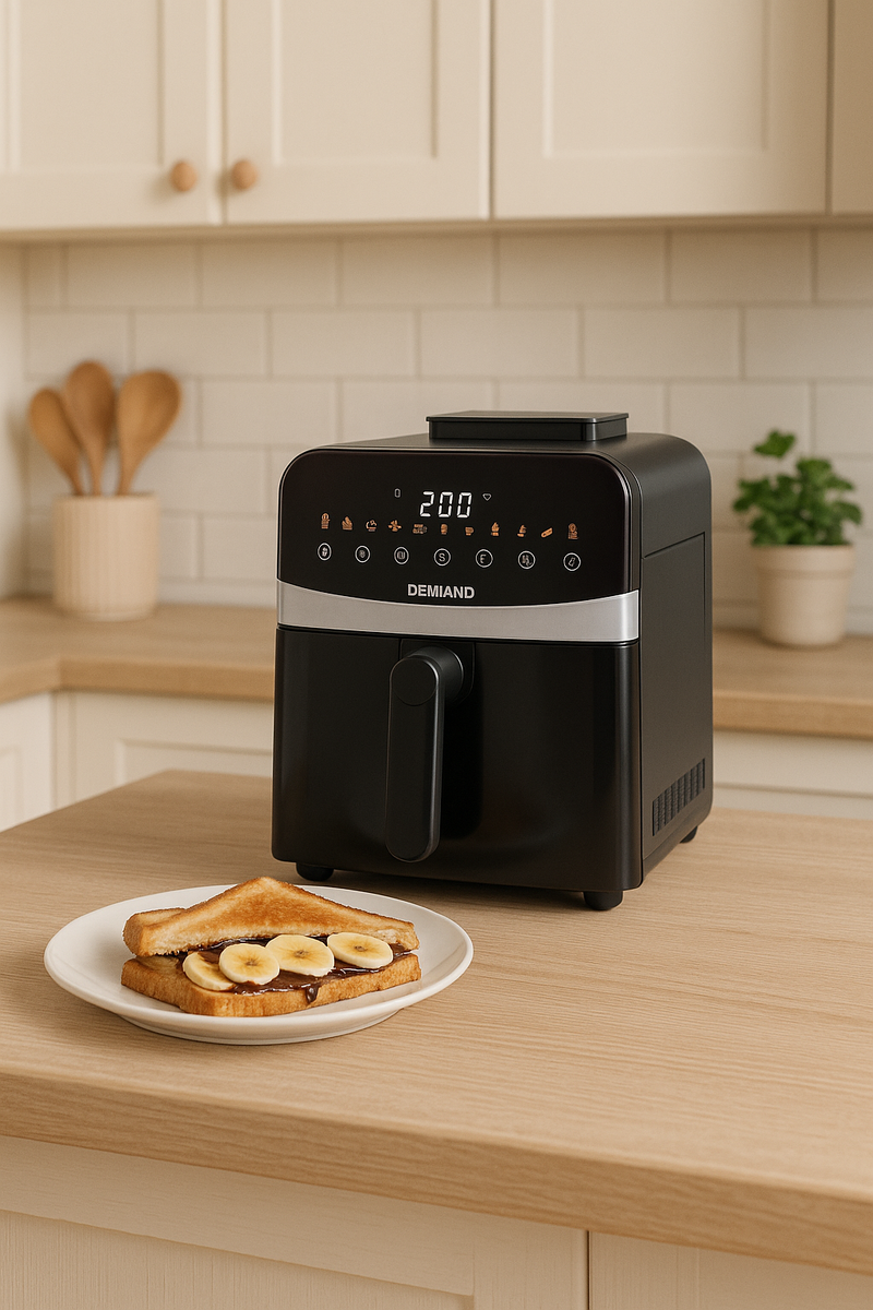 Вы пробовали готовить с ребёнком? Тогда вы точно знаете, что это про запоминающийся момент, а не про чистоту на кухне. Когда есть желание провести время вместе, даже самый простой рецепт превращается в настоящее приключение. Но мы всё же знаем, чего вы хотите избежать: — Разбитых яиц на полу — Муки везде, кроме теста — И полного разгрома кухни после "весёлого семейного вечера" 💡 Секрет? Выбирайте удобную технику и беспроигрышные рецепты — именно такие, какие можно приготовить в аэрогриле Demiand. Подходит для: малышей от 3 лет (под присмотром) Состав: - Хлеб для тостов - Банан - Несколько кусочков тёмного шоколада или нутелла - Немного сливочного масла Приготовление: 1. Дайте ребёнку намазать хлеб нутеллой или выложить дольки банана. 2. Соберите тост как сэндвич. 3. Лёгкий слой сливочного масла сверху — для хрустящей корочки. 4. В аэрогриль на 200°С, 4–5 минут. 🍫 Результат: минимум грязи — максимум удовольствия. Шоколад плавится, корочка хрустит, а ребёнок счастлив! Подходит для: д