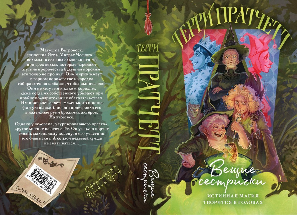 В мае выходит вторая книга из подцикла о ведьмах Терри Пратчетта — «Вещие сестрички»! Внутри вас ждут эскизы персонажей, дополнительная цветная иллюстрация, динамичные рисунки на полях, портрет автора, а также черно-белые иллюстрации в тексте. Иллюстрации от Полины Граф! 📖 Убитый обманом король, сходящий с ума узурпатор, вынужденный скрываться наследник и ведьмы, страшные и зловещие, — кто не слышал такой истории? Но знаете, все было совсем не так. Ведьмы матушка Ветровоск, нянюшка Ягг и Маграт Чесногк мирно живут в горах и собираются на шабаши, чтобы выпить чаю. Пророчествовать им не хочется, и уж тем более раздавать советы королям. Пусть даже одного такого убивают при странных обстоятельствах. Ну а маленького принца, которого ведьмы случайно спасли, удалось пристроить к бродячим актерам. Узурпатор имеет свою точку зрения. Он усердно портит жизнь маленькому ковену, и его участниц это очень злит. А со злой ведьмой лучше не связываться…