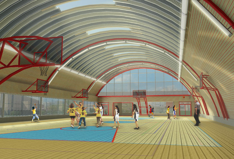 - Внутренняя отделка: Выполнение отделочных работ, устройство спортивного покрытия, установка оборудования.