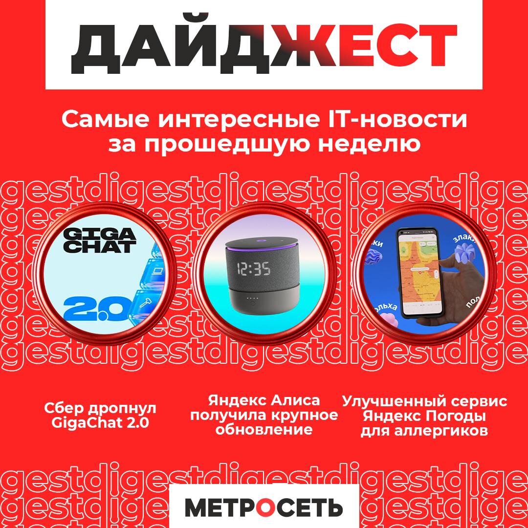 Цифровой дайджест недели! 🖥 Продолжаем делиться с вами интересными новостями из мира IT: 💬 Сбер представил обновленную нейросеть GigaChat 2.0. Теперь она на 25% точнее отвечает и в 2 раза лучше следует инструкциям. Поддерживает ИИ-агентов для выполнения сложных задач и многое другое. ❤️ Алиса от Яндекса получила крупнейшее обновление в своей истории — теперь она полноценный ИИ-ассистент. А также представили целых ТРИ новых колонки — первую портативную Станцию Стрит, Станцию Мини 3 Про и новую версию Станции Лайт 2 без часов. 🌐 В Яндекс Погоде теперь можно посмотреть прогноз активности пыльцы на 10 дней, календарь цветения и с помощью карты пыльцы найти регионы, где растения ещё не цветут. Оставляйте свою реакцию: 👍 — Ого, круто! 🔥 — Технологии рулят! 👍 — Хочу больше новостей! #цифровые_новости