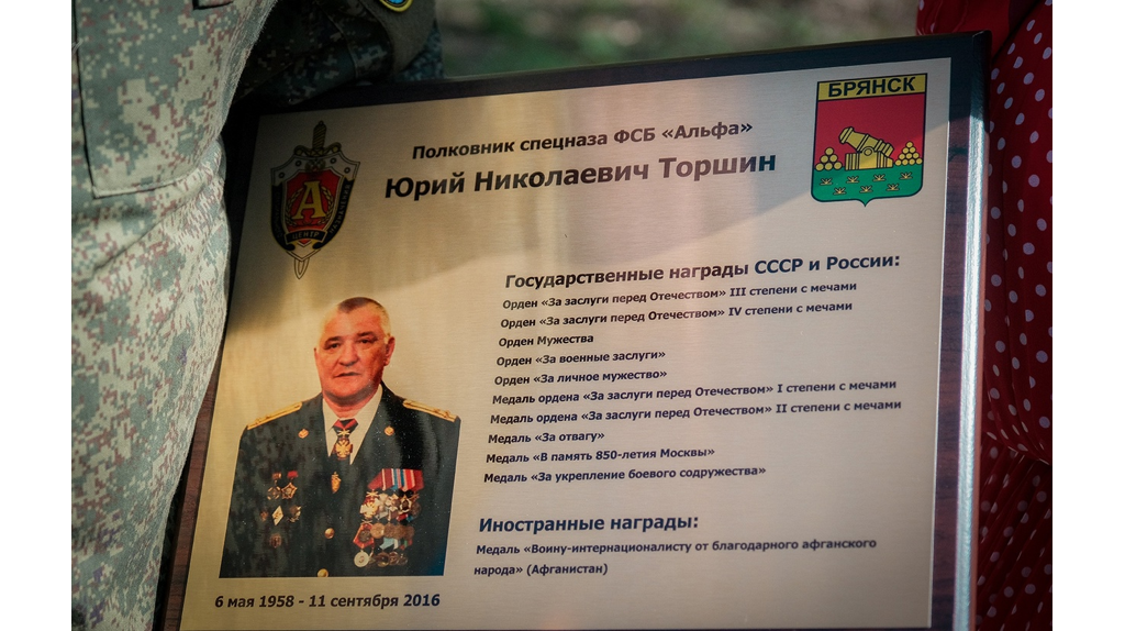 Одной из новых улиц в Бежицком районе Брянска присвоят имя полковника ФСБ Юрия Торшина. Планируется, что это будет магистраль, построенная рядом с улицей Антоновской. Юрий Торшин родился 6 мая 1958 года в посёлке Белые Берега. В декабре 1982 года он был зачислен в спецгруппу «Альфа» КГБ СССР. Прошёл путь от рядового сотрудника до руководителя отдела Управления «А» Центра специального назначения ФСБ России. Воевал в Афганистане и на Северном Кавказе. Участвовал в ликвидации террористов, захвативших школу в Беслане. В Москве во время тераката на Дубровке («Норд-Ост») возглавляемая Торшиным группа уничтожила главаря террористов Мовсара Бараева. Погиб Юрий Торшин в 2016 году в Чечне. Сегодня, 21 апреля, в Брянск в рамках гуманитарной акции «Пасхальный конвой» приехали сослуживцы боевого офицера. Они передали заместителю главы горадминистрации Игорю Чубчикову и главе Бежицкого района Татьяне Гращенковой мемориальную доску с именем Юрия Торшина, а также знамя с ликом Георгия Победоносца. Нов