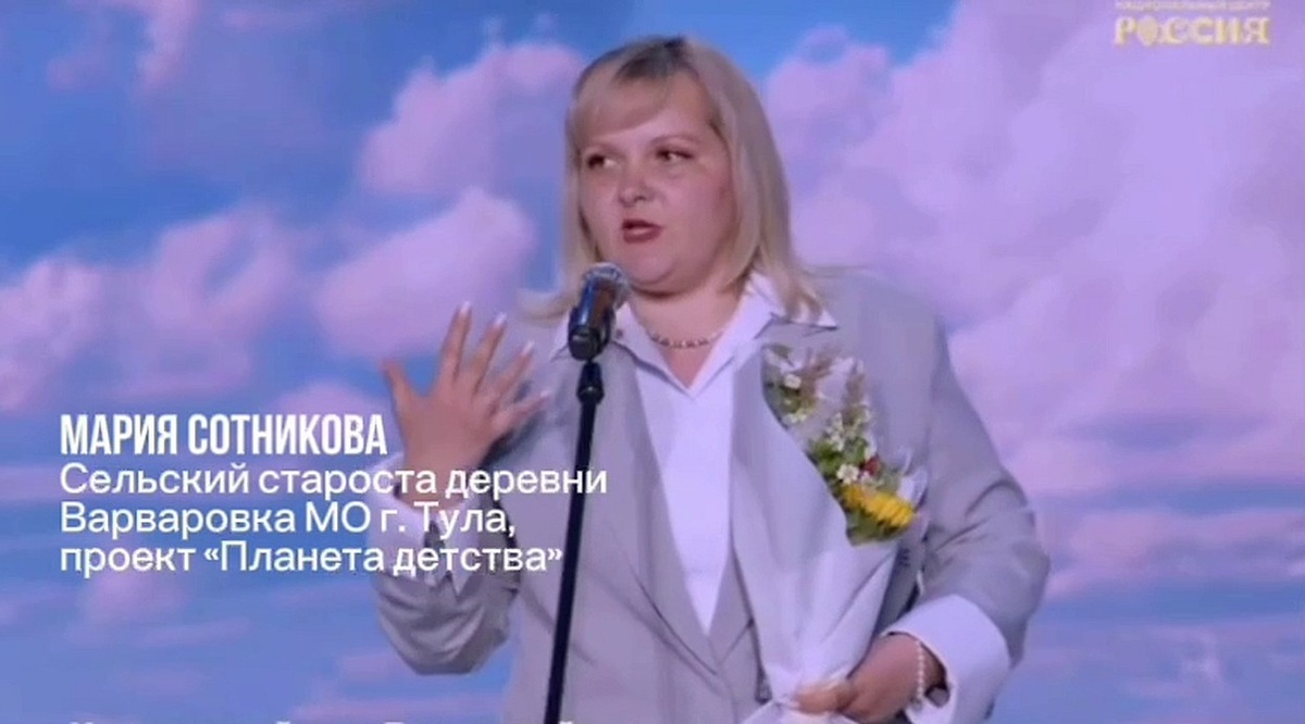 Проект «Планета детства» Марины Сотниковой занял 3 место в номинации «Развитие территории – благополучие жителей» на II Всероссийской муниципальной премии «Служение». Марина – староста тульской деревни Варваровка. Её поздравил в своем телеграм-канале губернатор Дмитрий Миляев. Благодаря стараниям Марины Сотниковой и активной поддержке местных жителей в Варваровке теперь есть современная спортивная площадка. Глава поселения отметила, что спорт играет важную роль в жизни людей. Появление площадки помогает приобщить молодёжь к активному и здоровому образу жизни. «Благодарю за вклад в развитие сельской территории, нашей малой родины – Тульской области!» – написал глава региона.«Большая честь здесь присутствовать и стоять на этой сцене. – Сказала Марина Сотникова. – Большая благодарность нашему президенту Владимиру Владимировичу за такую возможность себя проявить. Нам всячески помогал губернатор Тульской области Дмитрий Вячеславович Миляев, правительство региона».