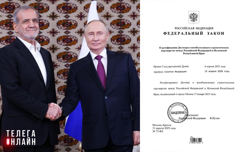 Теперь точно стратегические партнеры. Владимир Путин подписал закон о ратификации соответствующего договора с Ираном. #этимвсесказано 🚲 Подпишись на Телега Online